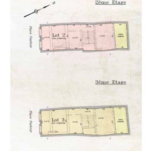 L’immeuble comprend 4 étages d’habitation et un 5ème niveau de combles.
